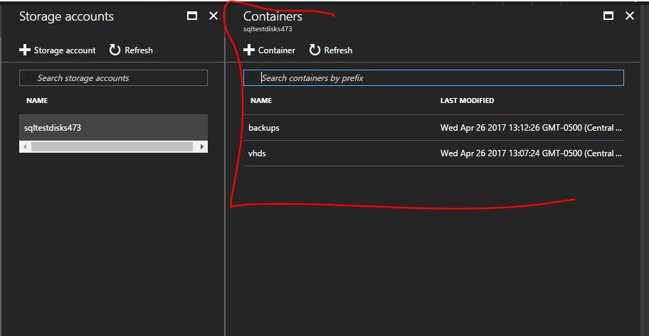 This is where the actual VHD file will reside, you can use an existing container or create a new one for these files